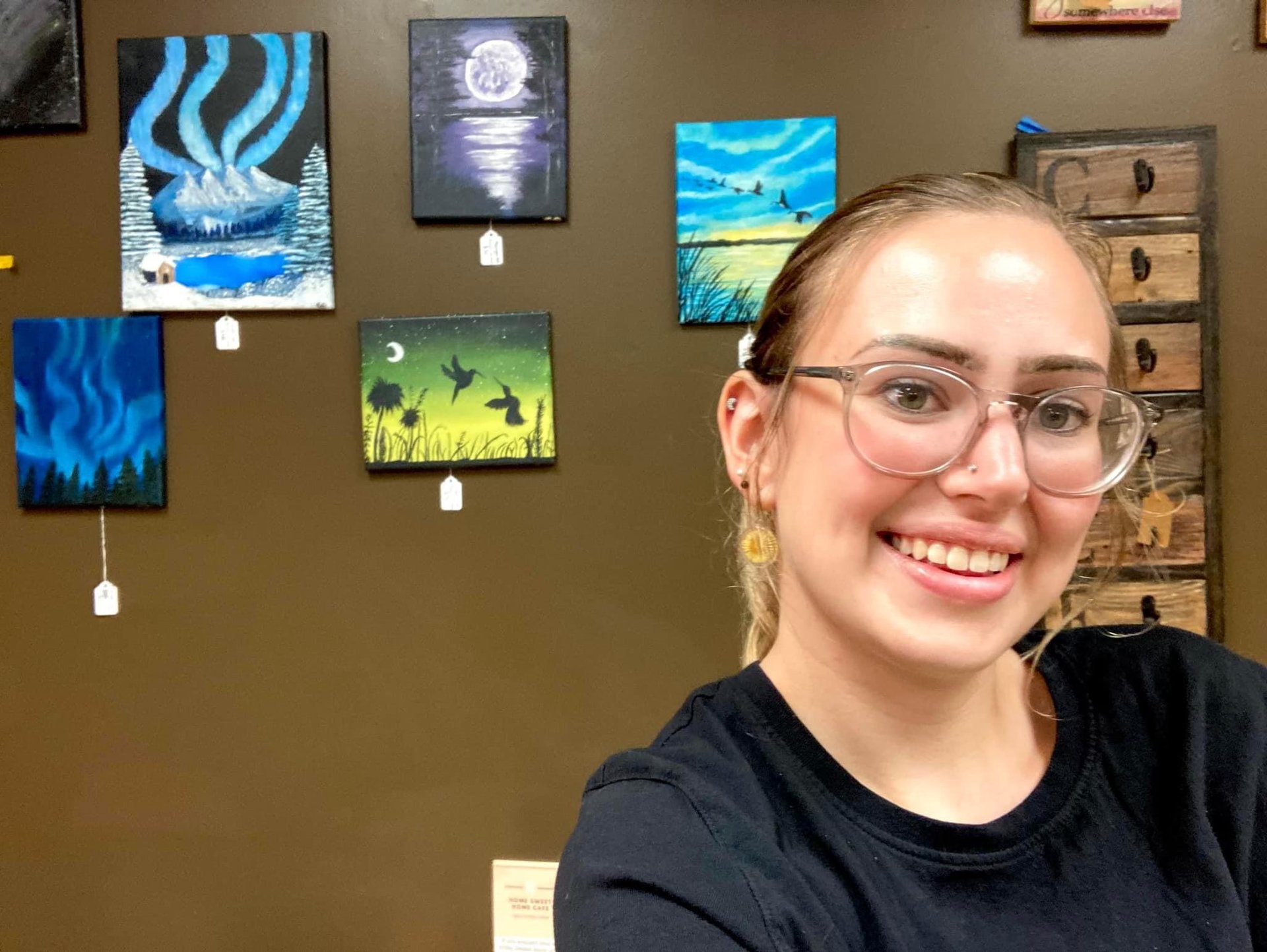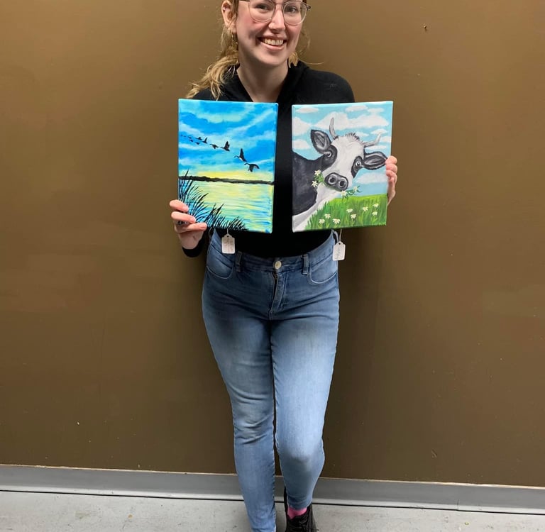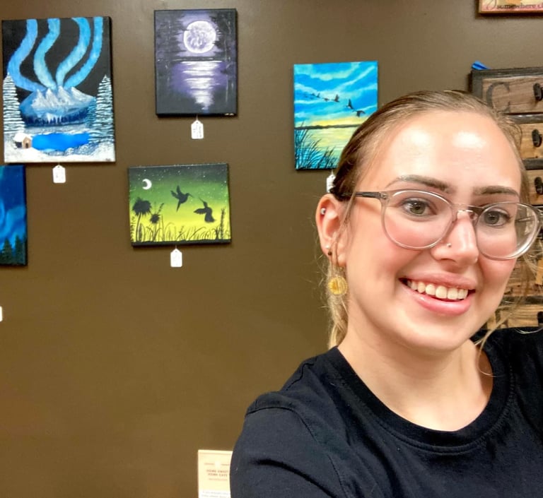 Gloria has an Associates degree in Fine Art at Sinclair community college. There she found she had a passion for drawing and painting. She loves to create realistic nature scenes based off the animals and lakes she would come across on her walks. Birds are one of her favorite things to paint. She has since started painting with Ed and they have made numerous pieces they can be found at home sweet home cafe in Englewood Ohio.