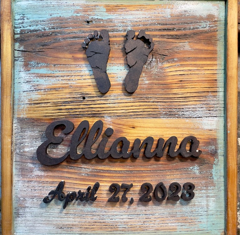 Preserving your newborn's footprints or handprints on a personalized wooden sign made from reclaimed lumber is a unique and beautiful way to capture the early moments of their life. These signs not only make a wonderful gift but also serve as a lasting reminder of your child’s early days. Whether you’re keeping it for yourself or gifting it to a loved one, a customized wooden sign is a treasure that will be cherished forever.